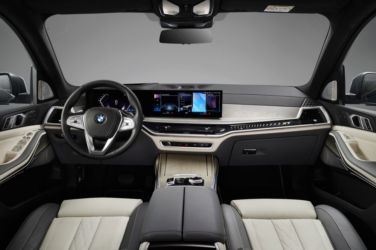 Uvnitř až sedmimístného interiéru vozu BMW rozmazluje posádku bezbřehým luxusem v kombinaci s těmi nejmodernějšími technologiemi. Automobilka přepracovala palubní desku, která nově nese velký prohnutý displej zahrnující 12,3palcový digitální přístrojový štít, tak i 14,9palcovou obrazovku infotainmentu s nejnovějším softwarem.