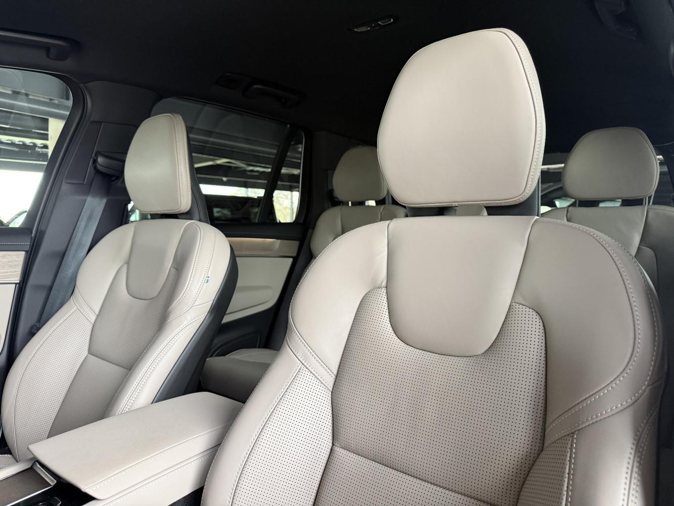 Barva polstrování Odvětrávané čalounění z kůže nappa v odstínu Cardamom v tmavém interiéru Charcoal